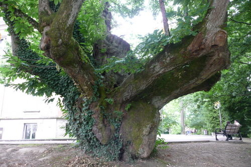 Très vieux châtaignier(500 ans), cf. 9m Taxodium distichum, cf. 5m Chênes sessiles, quercus petraea